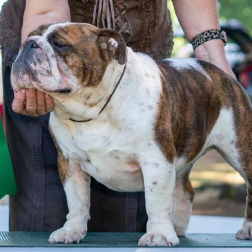 Ginger winning Winners Bitch to a 4 point major at the Bulldog Club of Greater Seattle. Puppies Due September 25, 2025
